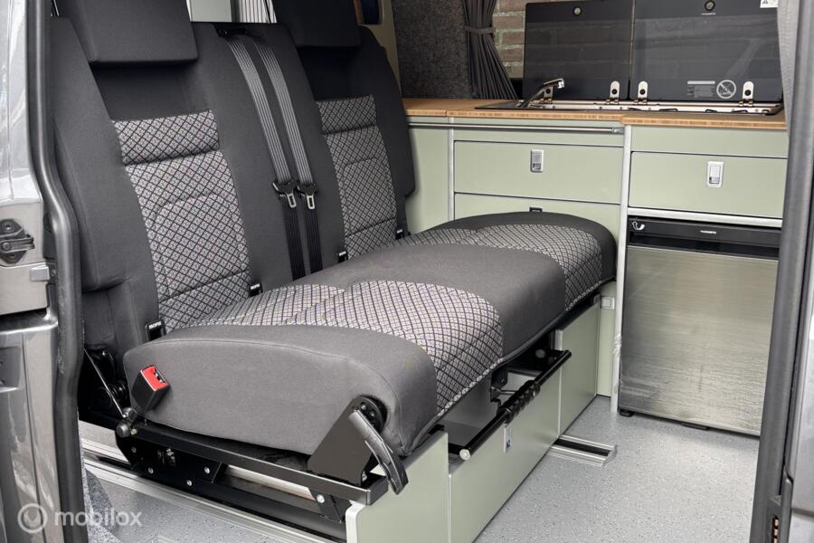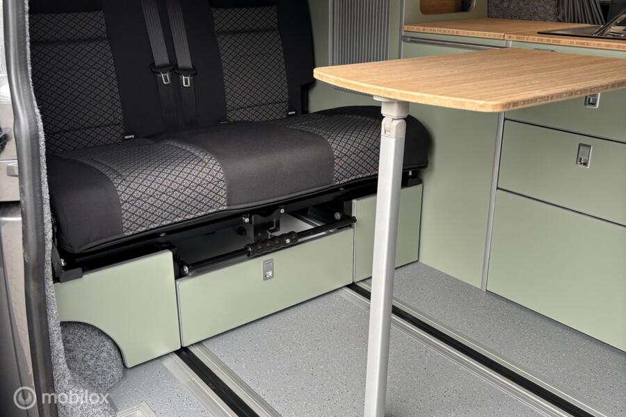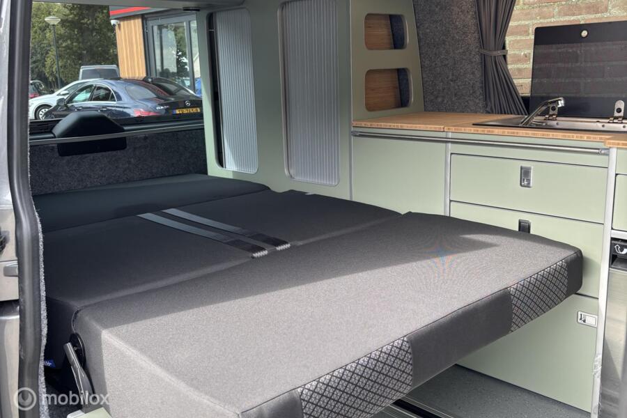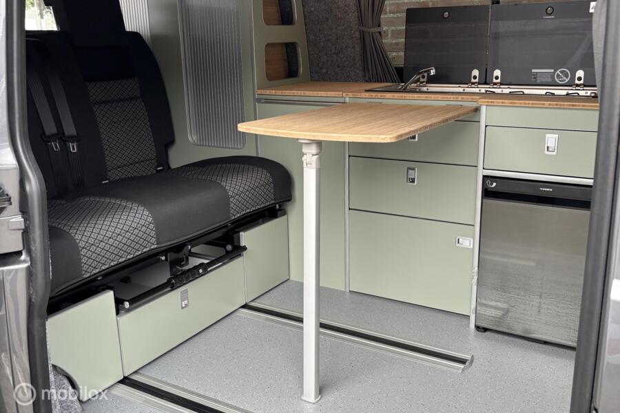 Verder is de buscamper voorzien van een slaaphefdak met een bedmaat van 120 x 200 cm, heeft hij rondom glastinting en een rail waarin zonnedoek kan worden gemonteerd om je te beschermen tegen de felle zomerzon.